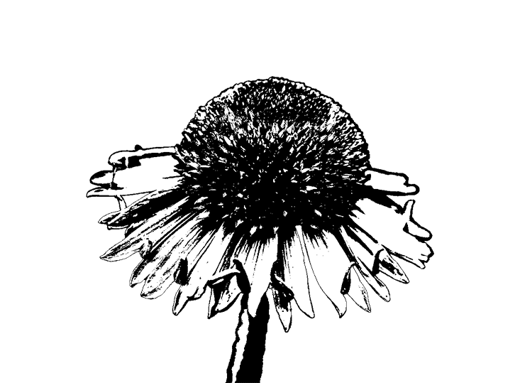 For the flower designs, photos of each bloom were thresholded in Photoshop to create bold, high-contrast graphics. A bright and contrasting two-color palette was then selected for each flower to reinforce the visual identity of its corresponding header.