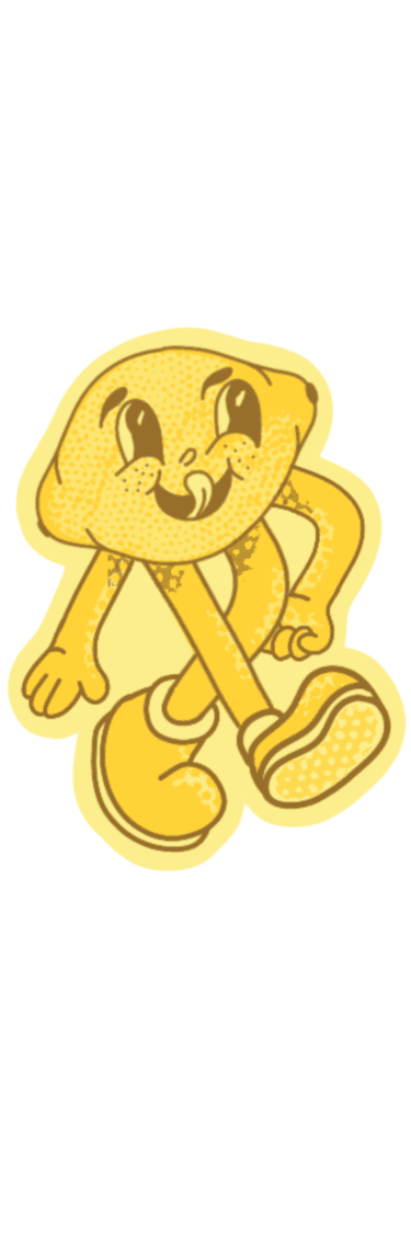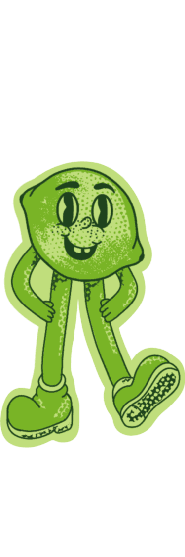 The illustration style features fun, expressive lemon and lime characters that add a playful and approachable personality to the packaging.